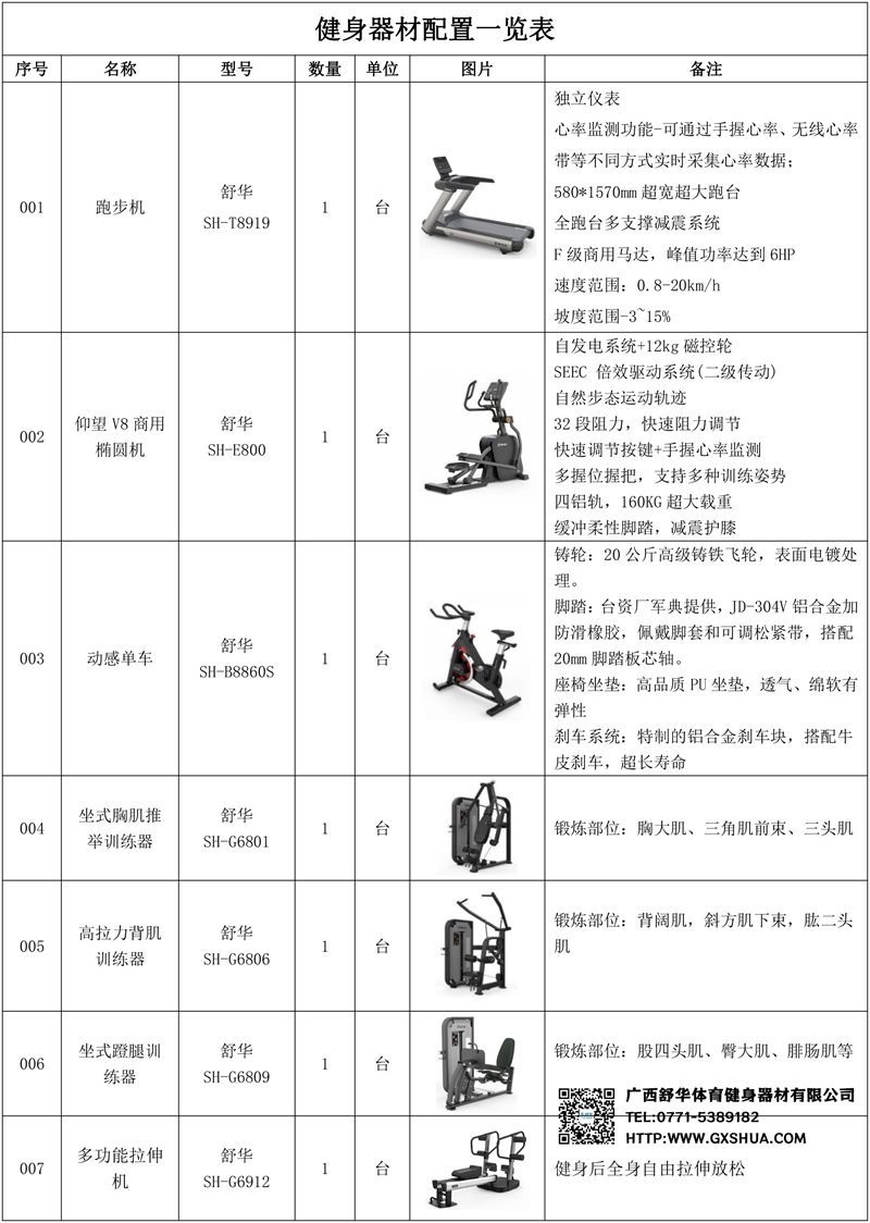 1.多宝电竞V9智能跑步机SH-T8919*3台-独立仪表-简洁大气,全新外观设计,健康运动新选择;心率监测功能,可通过手握心率、无线心率带等不同方式实时采集心率数据;580*1570mm超宽超大跑台-跑感舒适,跑台整体安全稳定;全跑台多支撑减震平台,保证跑台超强支撑力,达到180kg支撑,满足专业健身房需求。F级商用马达-超强马达,AC 3.0HP 交流,峰值功率达到6HP,F级商用品质。速度范围达到0.8-20km/h;V9跑步机可实现跑台扬升功能,坡度范围-3~15%,满足客户不同的锻炼需求。