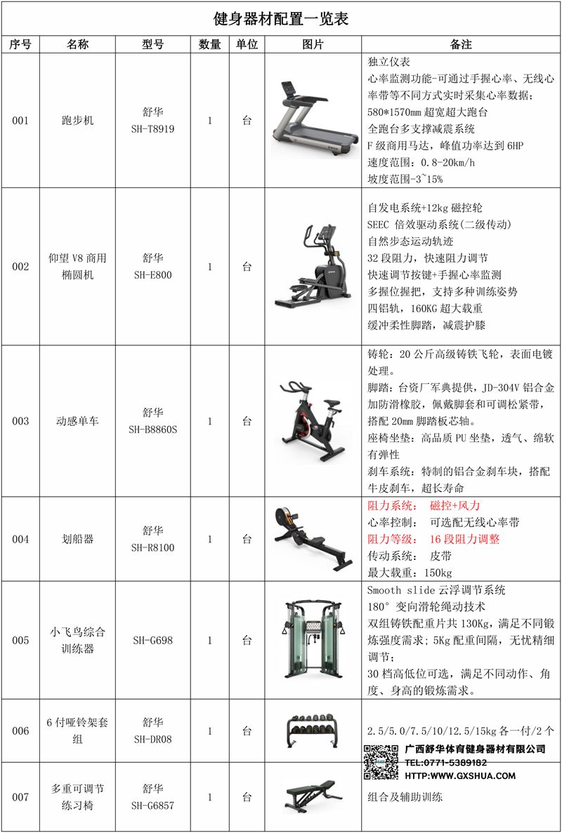1.多宝电竞V9智能跑步机SH-T8919*1台-独立仪表-简洁大气,全新外观设计,健康运动新选择;心率监测功能,可通过手握心率、无线心率带等不同方式实时采集心率数据;580*1570mm超宽超大跑台-跑感舒适,跑台整体安全稳定;全跑台多支撑减震平台,保证跑台超强支撑力,达到180kg支撑,满足专业健身房需求。F级商用马达-超强马达,AC 3.0HP 交流,峰值功率达到6HP,F级商用品质。速度范围达到0.8-20km/h;V9跑步机可实现跑台扬升功能,坡度范围-3~15%,满足客户不同的锻炼需求。